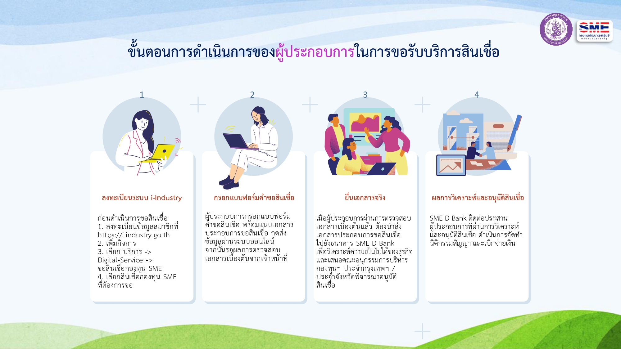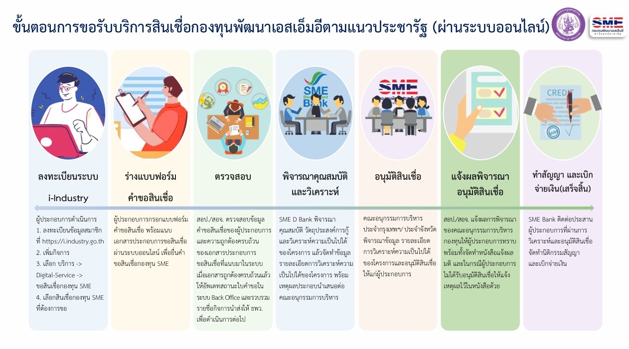 ขั้นตอนการขอรับบริการสินเชื่อกองทุนพัฒนาเอสเอ็มอีตามแนวประชารัฐ (ผ่านระบบออนไลน์)